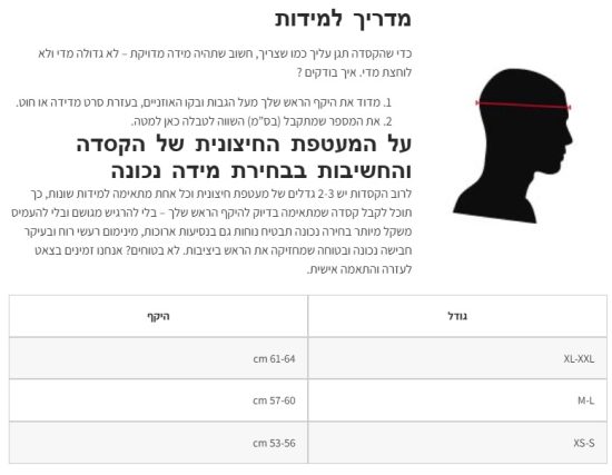 לבחירת המידה נא לציין בהערות: XS / S / M / L / XL / XXL
